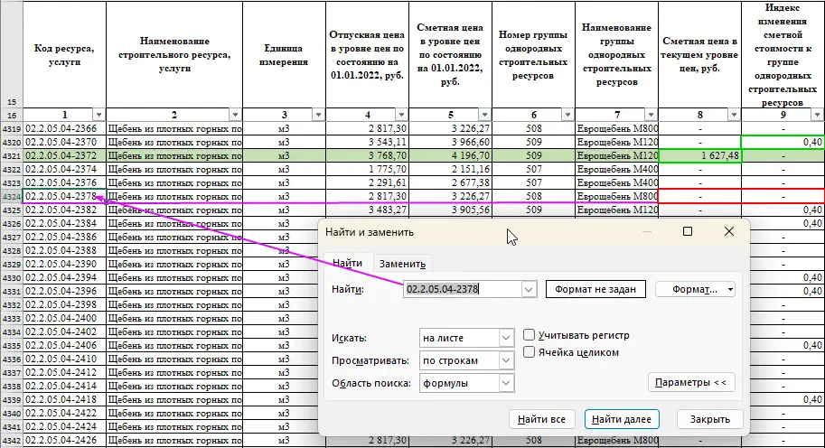 Данные для строки ресурса указываются в одной из колонок: Сметная цена в текущем уровне цен или Индекс изменения сметной стоимости к группе однородных строительных ресурсов.