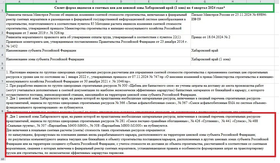 Если в обеих колонках стоит прочерк, то прочитайте примечания к сплит-форме. Примечания к сплит-форме опубликованы в верхней части документа, над табличной частью. Есть пункт об использовании в сметах ресурсов, которые не представлены на рынке этой области.