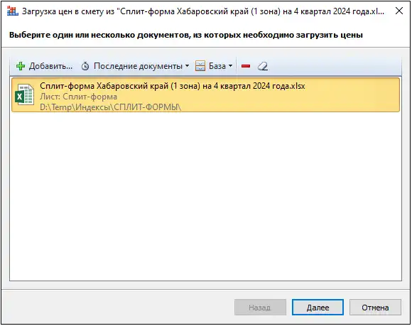 Нормативная база в смете и загруженный файл сплит-формы не соответствуют друг другу