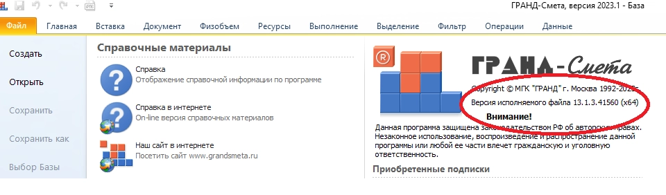 Для расчёта локальных смет по РИМ (ресурсно-индексный метод) необходимо убедиться, что вы пользуетесь версией не ниже 2023.1.x. Откройте меню «Файл» далее меню «Справка», версия исполняемого файла должна быть не ниже 13.1.x