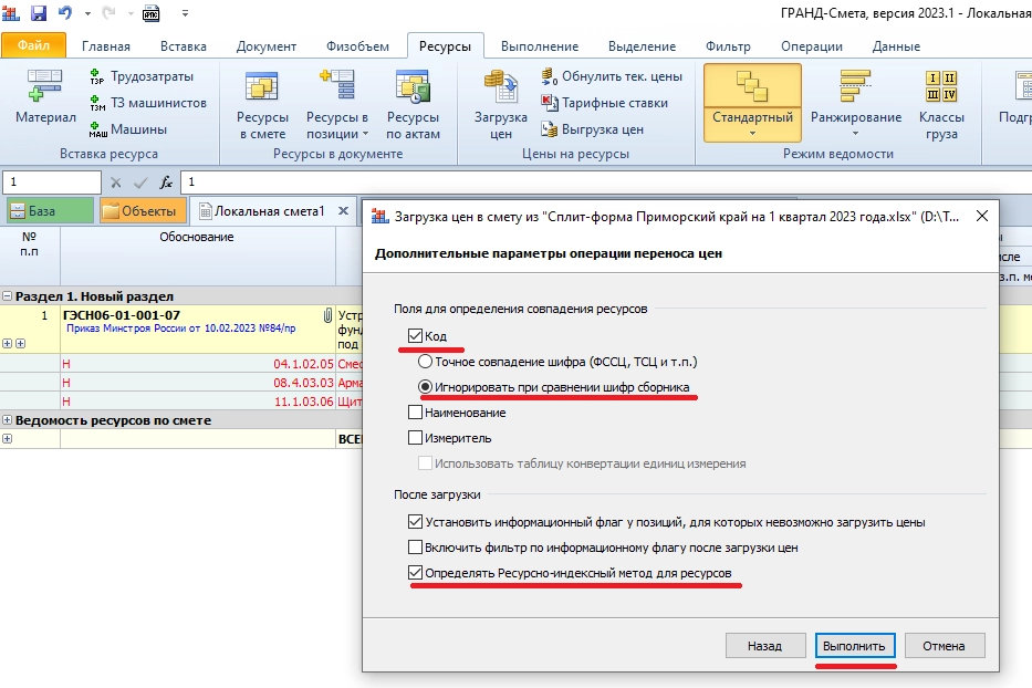 Основные этапы расчета сметы по РИМ в ПК «ГРАНД-Смета»