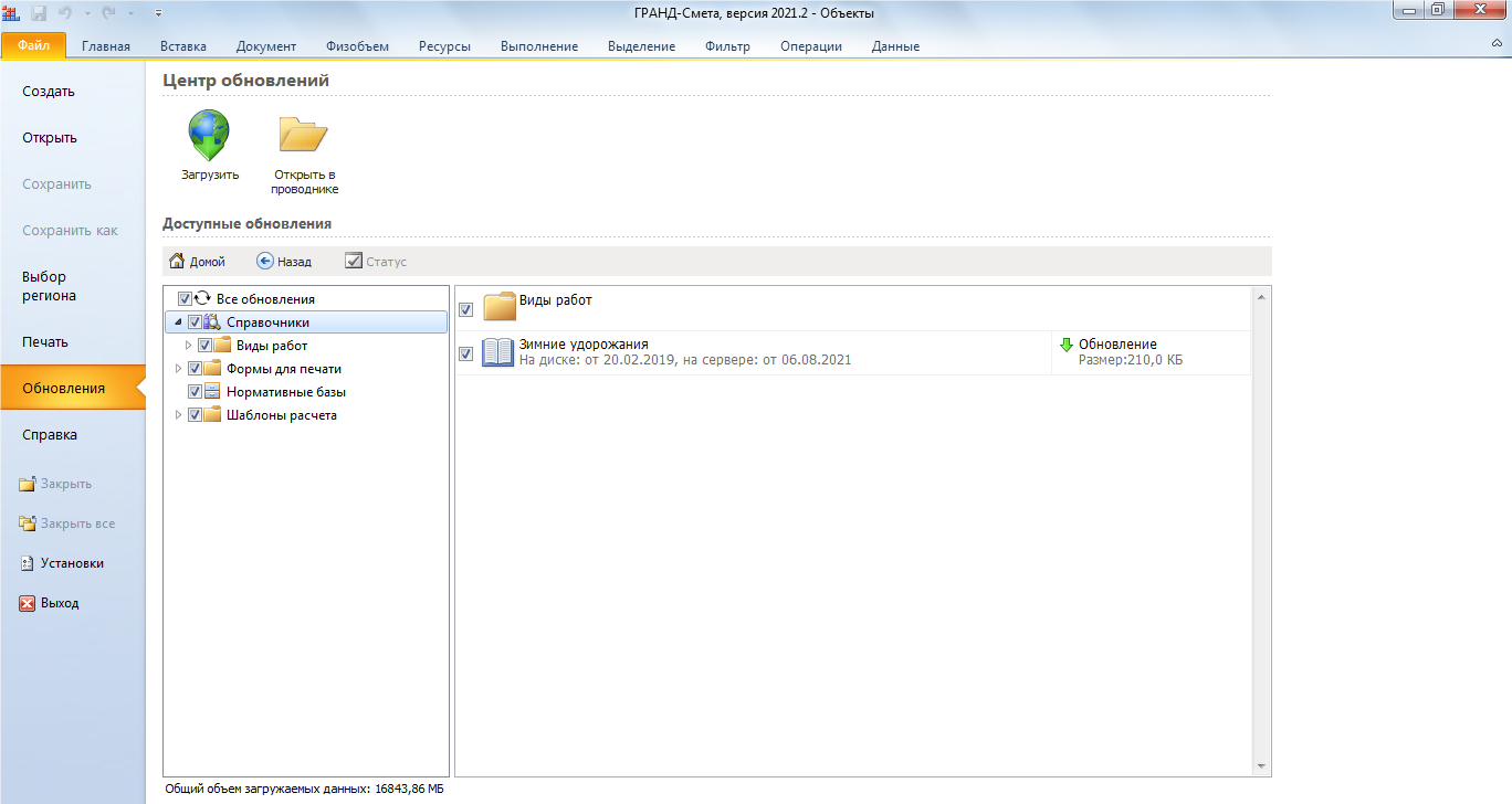 В программе «ГРАНД-Смета» версии 2021.2 добавлен новый режим, в рамках которого единообразно осуществляется обновление любых используемых в программе данных – как нормативных баз, так и служебных данных (справочники, шаблоны выходных форм для печати и т. п.).