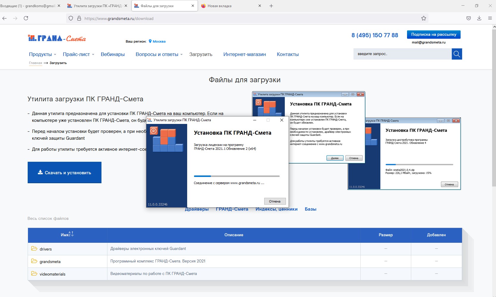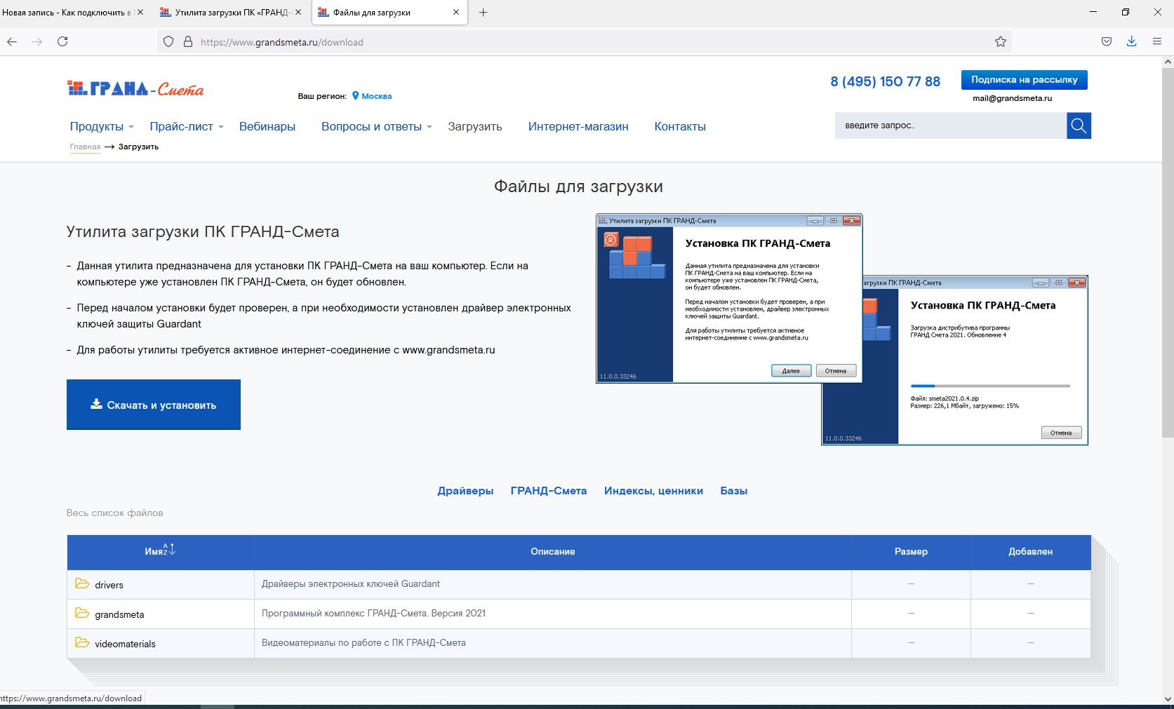 Нажатие кнопки Загрузить приведёт к тому, что все данные, отмеченные флажками, автоматически скачиваются с сервера grandsmeta.ru и устанавливаются в состав программы «ГРАНД-Смета».